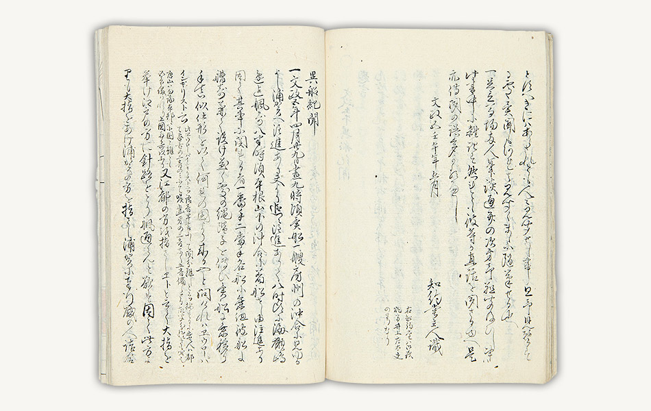 浦賀に来航したイギリス船は事なく去りましたが、その後、文政7年(1824)にイギリスの捕鯨船員が水戸藩領大津浜(茨城県北茨城市)や薩摩の宝島に不法上陸する事件があり、翌文政8年(1825)、幕府は、異国船は打ち払うべしとする異国船打払令(無二念打払令とも)を出し、異国船排除の姿勢を明確に打ち出しました。『視聴草』は全176冊。