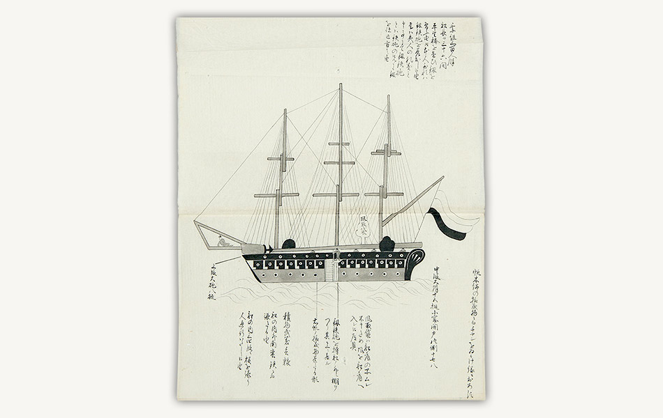 天保15年(1844)7月、オランダ国王ウィレム2世の「日本国王」(徳川将軍)あての手紙(国書)を携えて、特使コープスが長崎に来航します。手紙には、蒸気船の発達で通商がますます盛んになっている昨今、日本がこのまま鎖国を続ければ西欧諸国と摩擦が生じ、アヘン戦争で惨敗した清国のようになる恐れがあると書かれていました。開国の勧告。しかし幕府はオランダ国王の勧告に従う意志のない旨を回答しました。