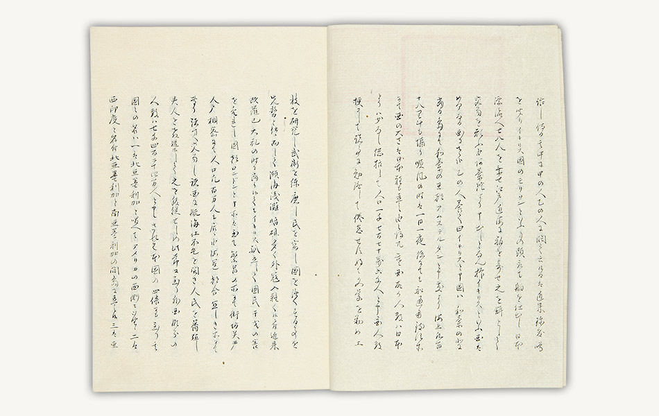 医師として幕府に仕えた塩田順庵(しおだじゅんあん 名は泰。1805-71)も、長年にわたって海防を研究し、『海防彙議』を編纂しました。本書は、序文で「冤罪や人に貶られ零落した人々の著述も収録した」(意訳)と述べているように、幕政を批判した罪で入獄した高野長英の「戊戌夢物語(ぼじゅつゆめものがたり)」等、多彩な論文を載せた海防論集です。続編・補遺を合わせ全52冊。