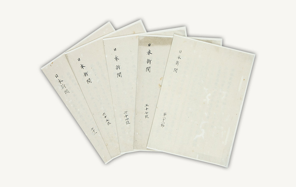 『日本新聞』は、横浜で発行された『ジャパン・タイムズ』の翻訳で、第22号(1866年2月2日発行)・57号(同年10月13日発行)・64号(同年12月1日発行)・65号(同年12月8日発行)・72号(1867年1月26日)の5部。翻訳者は開成所の堀越英之助、内田弥太郎、春日与八郎ら。