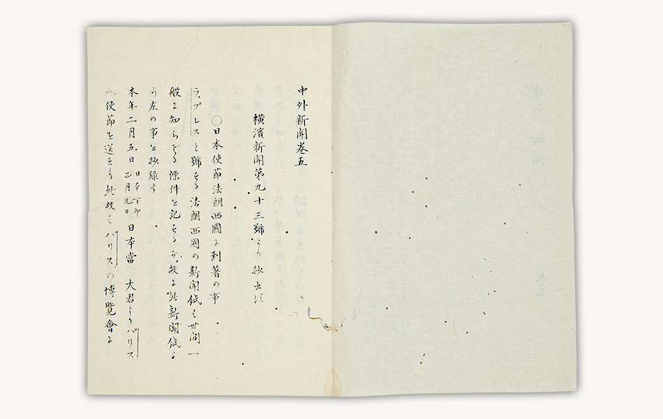 幕府は、すでに安政3年(1856)に蕃書調所に外国新聞の翻訳を命じ、海外情報を集めていましたが、情報源としての外国新聞の重要性は、文久2年(1862)の生麦事件を機に飛躍的に大きくなります。事件の賠償を求めるイギリス側の動向や薩英戦争(文久3年、生麦事件の結果発生したイギリス艦隊と薩摩藩の交戦)に関する詳細で迅速な情報の入手を必要としていた幕府に、外国新聞は掛替えのないものと認識されたのです。