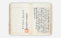 展示資料は、筵織機の図面とこれを発明した磯崎眠亀(1834―1908)が明治29年緑綬褒章を受けた際の文書です。筵(むしろ)とは、藁やイグサで編んだ敷物のことで、茣蓙(ござ)や畳表として使われています。磯崎は、この筵を「錦莞筵(きんかんえん)」として高級輸出品にまで高めました。