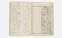 展示資料は、佐賀県の発明家真崎照郷(1851―1927)が明治40年に藍綬褒章を受章した際の文書と、褒賞の審査参考として添付された発明品の図です。真崎は、明治21年、うどん、そうめんなどの麺類を製造する機械「麺類製造機械」(特許第448号)の特許を取得しました。
