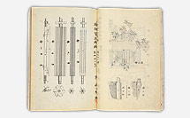明治15年、真崎は、木綿の糸繰機にヒントを得て、綿繰機が綿実を繰り出す時に使用するローラーを応用した製麺機を完成させました。その仕組みは、小麦粉を捏ねたものをロールの間に通過させて紙状に薄く延ばし、さらに、縦に溝を掘ったロールの間を通して細かく糸状に切断するというものでした。その後も真崎は、製麺機のほか製粉機など様々な発明品を考案し、49種類もの特許を得ました。こうした真崎の活躍は「西の豊田佐吉」と評されたといいます。