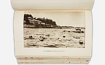 展示資料は、明治38年に御木本幸吉が緑綬褒章を受章した際の文書と、昭和2年に日仏会館の研究員による日本での真珠の養殖法を紹介したパンフレットです。英虞湾での真珠養殖の様子が写真入りで紹介されています。