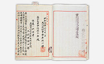 展示資料は、水道管用鋳鉄管の製造方法を発明した久保田権四郎が昭和3年に緑綬褒章を受章した際の文書です。