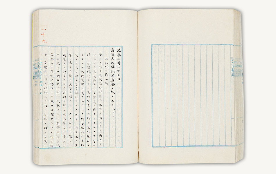 慶応3年(1867)10月14日、江戸幕府最後の将軍徳川慶喜は大政奉還を申し出ました。12月9日には、王政復古の大号令が発せられ、天皇を中心とする新政府が樹立されました。新政府は、摂政・関白・幕府を廃止し、天皇のもとに、総裁(そうさい)・議定(ぎじょう)・参与(さんよ)の三職(さんしょく)を置きました。新政府の最高官職であり政務を統括する総裁には、有栖川宮熾仁(ありすがわのみやたるひと)親王が就任しました。