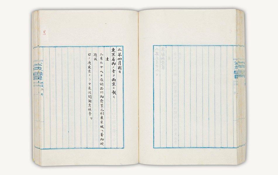 明治2年(1869)3月7日京都を出発された明治天皇は、同月28日に東京城に到着され、「西京」=京都にも、その報が届けられました。この日、東京城は「皇城(こうじょう)」と称されることとなりました。この後、東京は新しい日本の政治上の中心都市として発展していくこととなります。一方、京都は、即位の礼や大嘗祭を行うと皇室典範で定められたように、儀礼空間としての性質が残されました。