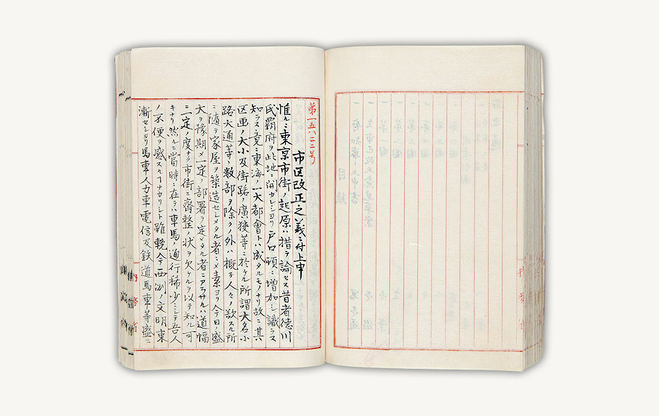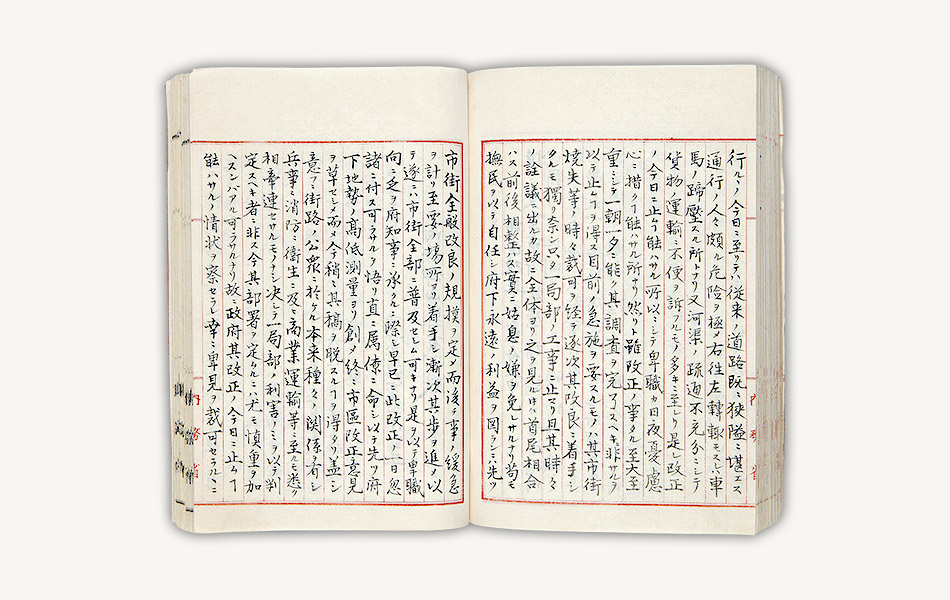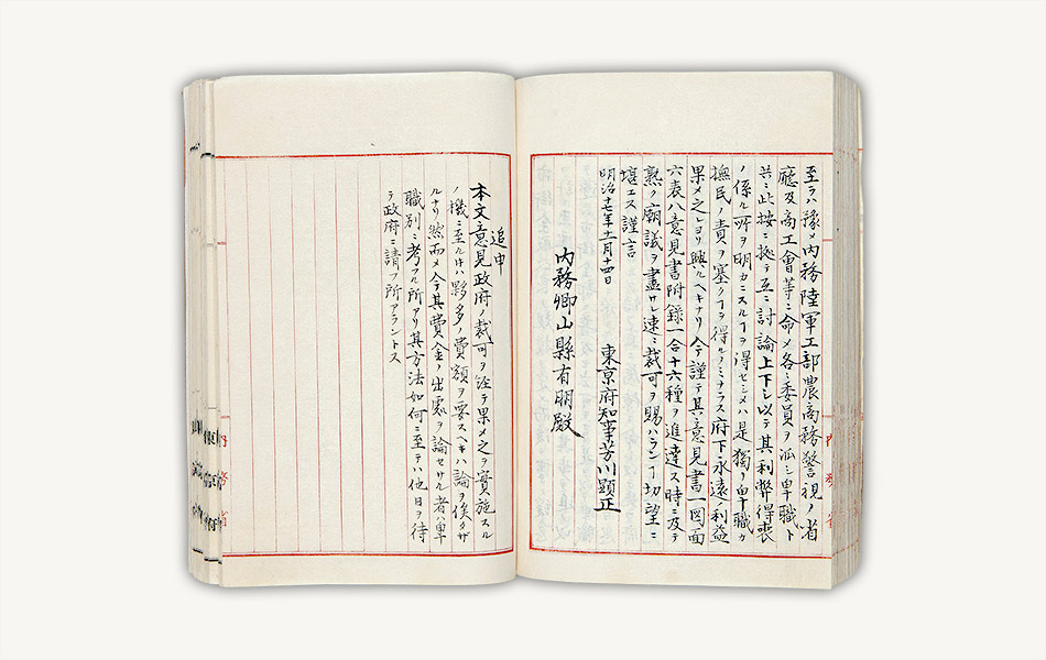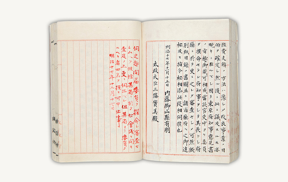 この意見書をうけて山県内務卿は、「市区改正」のための審査会設置について、三条実美(さんじょうさねとみ)太政大臣に伺書を提出。同年12月、東京市区改正審査会が内務省に設置されることとなりました。