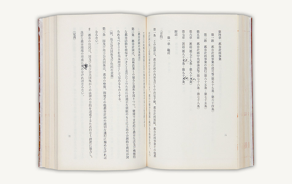 昭和43年(1968)6月、都市計画法が新たに公布され、大正8年(1919)公布の旧都市計画法は廃止されました。ほぼ半世紀ぶりの全面改正です。同法律の理由は、都市とその周辺地域での「無秩序な市街化を防止し、計画的な市街化を図るため」に「都市計画制度を全面的に改革する必要がある」と述べています。
