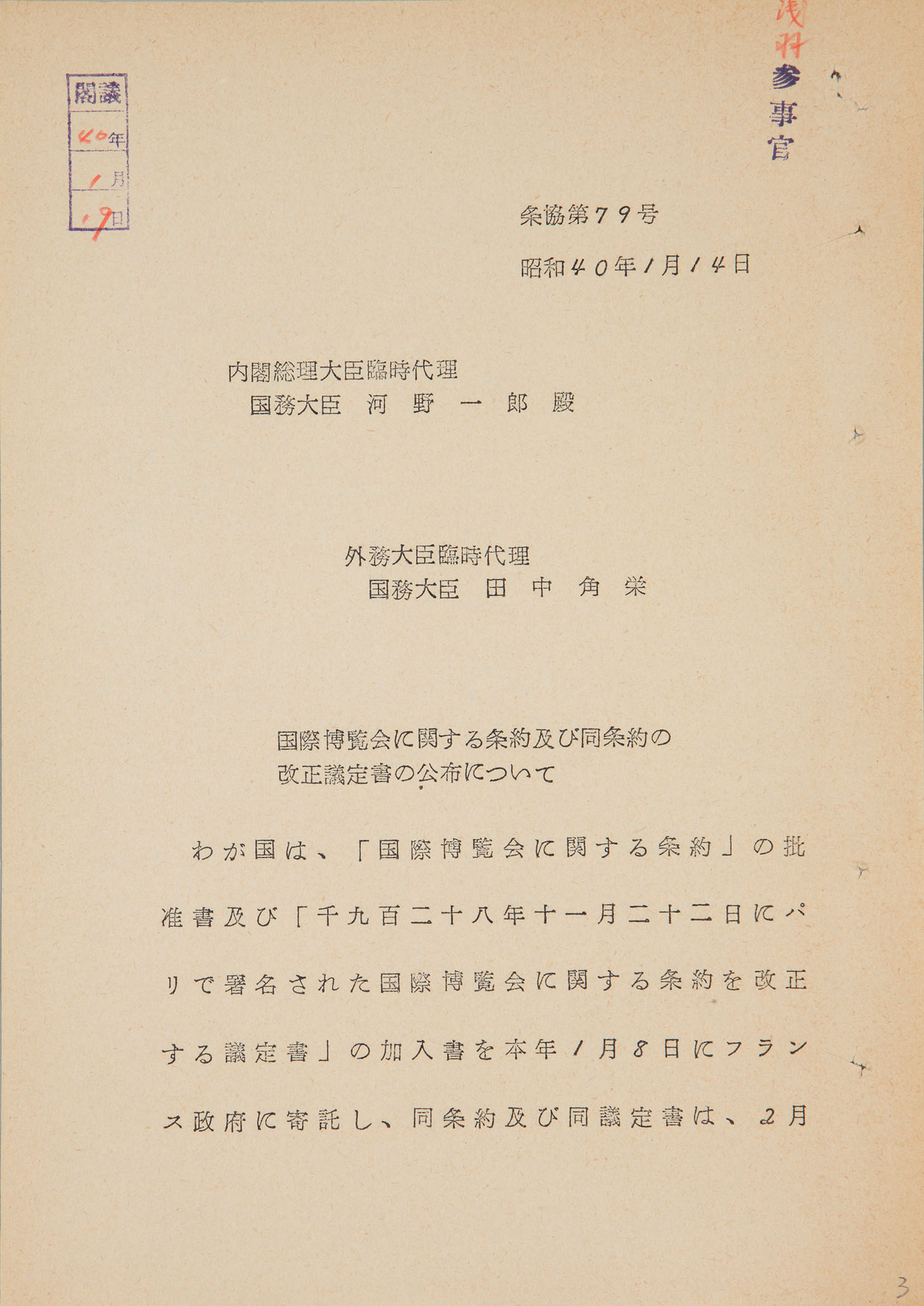 国際博覧会に関する条約及び同条約の改定議定書の公布の件