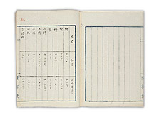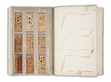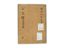 開拓使から太政官に明治6年(1873)9月19日付けで送られた「北海道札幌近傍樹木品類名書」です。附属資料として、別冊で木片一覧(「北海道産樹木見本」)が添えられています。樹木品類名書には、ひとつの樹木につき「本名」(漢字)・「和名」(読み)・「北海道方言」(アイヌ語)の三種が記されており、北海道地方における独自の呼び方をうかがうことができます。