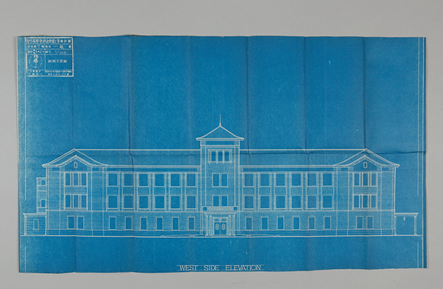 掲載資料は、昭和6年、現在の小平市に移転新設された女子英学塾の校舎新築工事設計図です。現在の津田塾大学で、ハーツホン・ホールと呼ばれている大学本館の、1/200の「透視図」です。