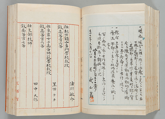 掲載資料は、大正7年、黒田が東京女子高等師範学校教授に任命された際の裁可書です。黒田は昭和38年まで母校で教鞭をとりました。