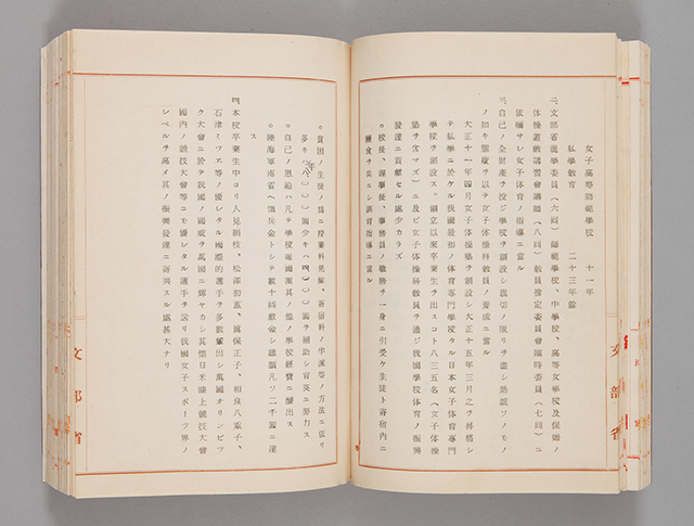 大正11年、二階堂は、私立の専門的な学校が中心になって体育教育を普及させる必要があると考え、二階堂体操塾を創設しました。翌年の関東大震災で校舎が被害を受けたため、世田谷に新校舎を建設、大正13年に移転しました。大正15年には専門学校として認可を受け、日本初の私立体育専門学校である日本女子体育専門学校(現在の日本女子体育大学)を創設しました。