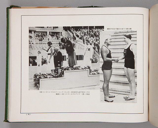 掲載資料は昭和11年、東京毎夕新聞社が刊行した、当時のスポーツとオリンピックの世界的な動向を紹介した書籍です。同年に行われたベルリンオリンピックの様子が、多くの写真とともに紹介されています。