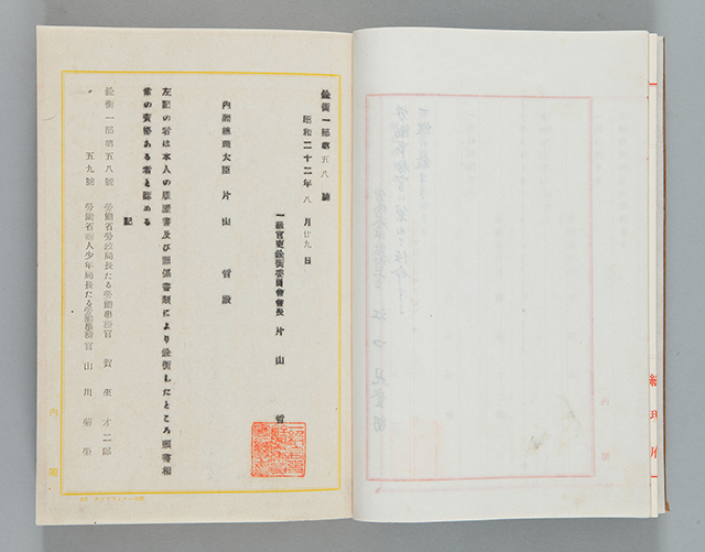 掲載資料は、山川が婦人少年局長に任命された際の文書です。