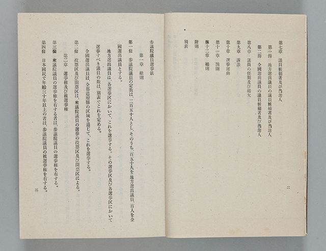 掲載資料は、昭和22年2月24日に参議院議員選挙法を公布した際の文書です。第1回参議院議員通常選挙は、同年4月20日に行われ、10名の女性議員が当選しました(当選者総数の4%に相当)。