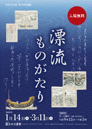 四方を海で囲まれた日本に暮らす人びとは、中国、ベトナム、ロシア、アメリカ、さらには無人島と、数多くの漂流・漂着を体験してきました。一方、その逆もしかり。島国日本には異国から多くの船や人が流れ着きました。 本展示では、アジアや欧米へ漂流した日本人の体験や、日本に漂着した異国人への幕府の対応、現地の人々とのふれあいの記録などを、当館所蔵資料からご紹介いたします。