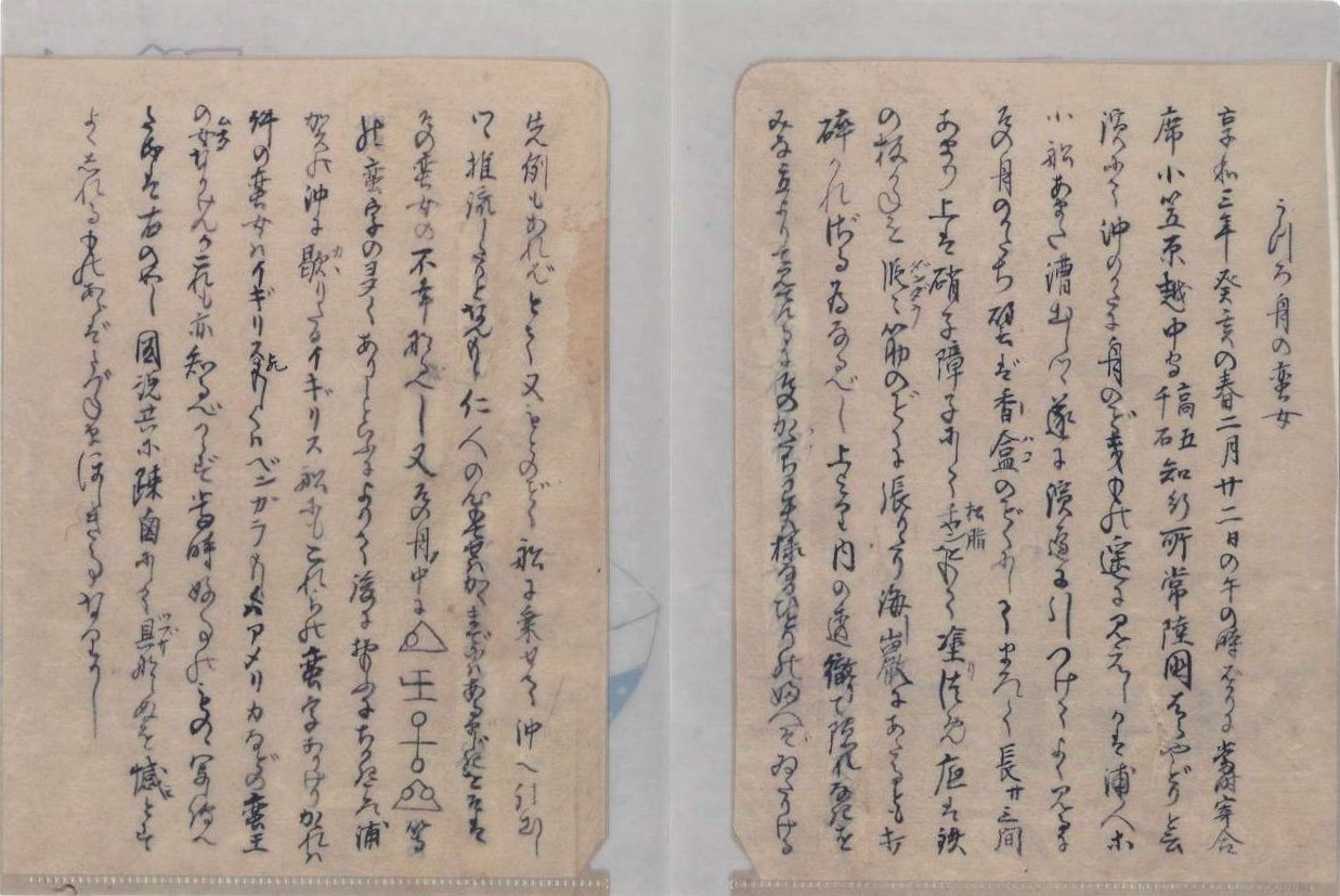 享和3年(1803)に常陸国(現在の茨城県)へ奇妙な船が漂着、箱を持った女性が乗っていた――。 曲亭馬琴の書物や、当館所蔵の国学者・屋代弘賢による記録でも知られる奇談です。 『弘賢随筆』より。 サイズ: A5(見開きA4)サイズ