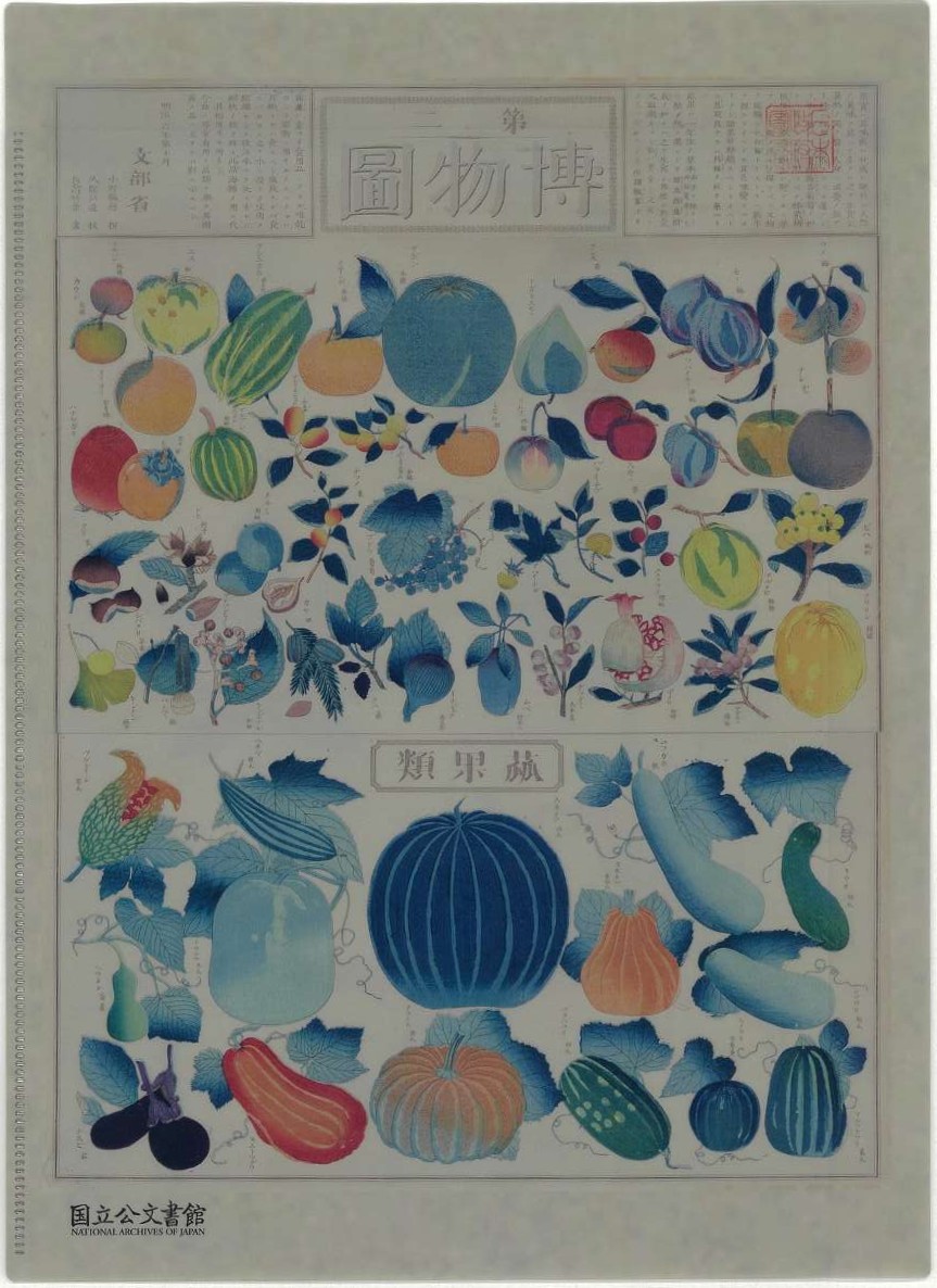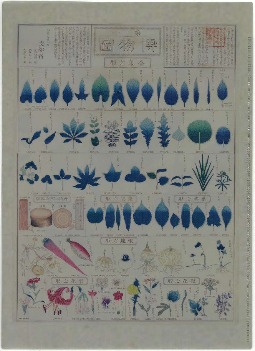 植物の絵が描かれた掛図「博物図」より。明治6年(1873)文部省刊行。 サイズ: A4(見開きA3)サイズ