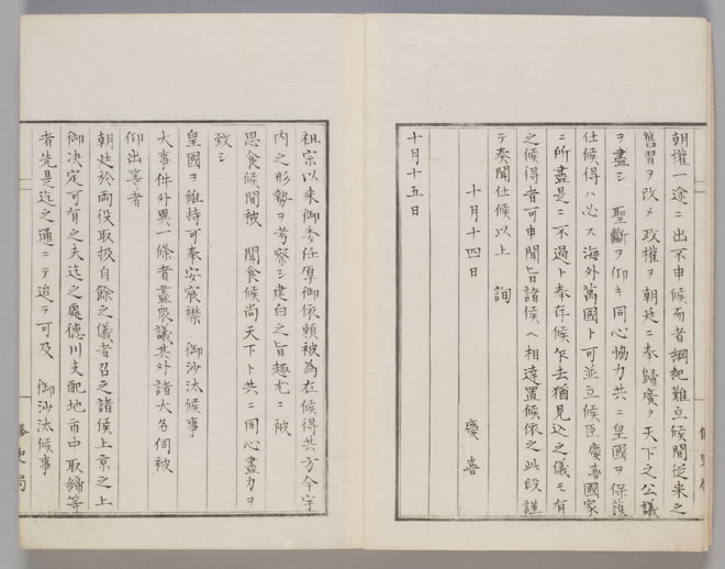 幕末の公家で、摂家二条家の当主二条斉敬(なりゆき)の日記。徳川慶喜の大政奉還の上表(じょうひょう)が記されています。