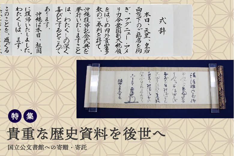 国立公文書館では、個人の方等から、我が国の歴史的事実に関する
