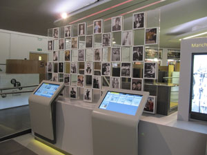 中央図書館の正面玄関ホールを通り抜けると、「Archives+」と書かれた入口が目に入る。のぞき見れば、各種のタッチパネル式の最新式電子機器が所狭しとならぶハイテク空間が広がる。オープン以降、図書館に来館した約140万人のうち、約70%(約98万人)が訪れたというこの展示スペースは、マンチェスター地域に所在する、官・民・学のアーカイブズ機関[1]の連携事業体、アーカイブズ+により運営されている。
