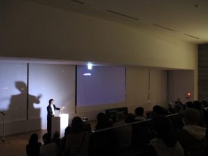 記念講演会では、「記録に息づく人間の物語 ~文学と歴史の交差点で~」という演題で日本文学研究者のロバート・キャンベル氏にお話しいただいた。この講演会では、公文書のみならず、記録、収集すること、そして集めたアーカイブの大切さについて、輪島塗職人の技術やウクライナの首都キーウで収集したうつわの破片の事例を含めてご説明いただいた。なお当館には講堂がないことから、隣接する中央図書館の視聴覚ホールを利用した。